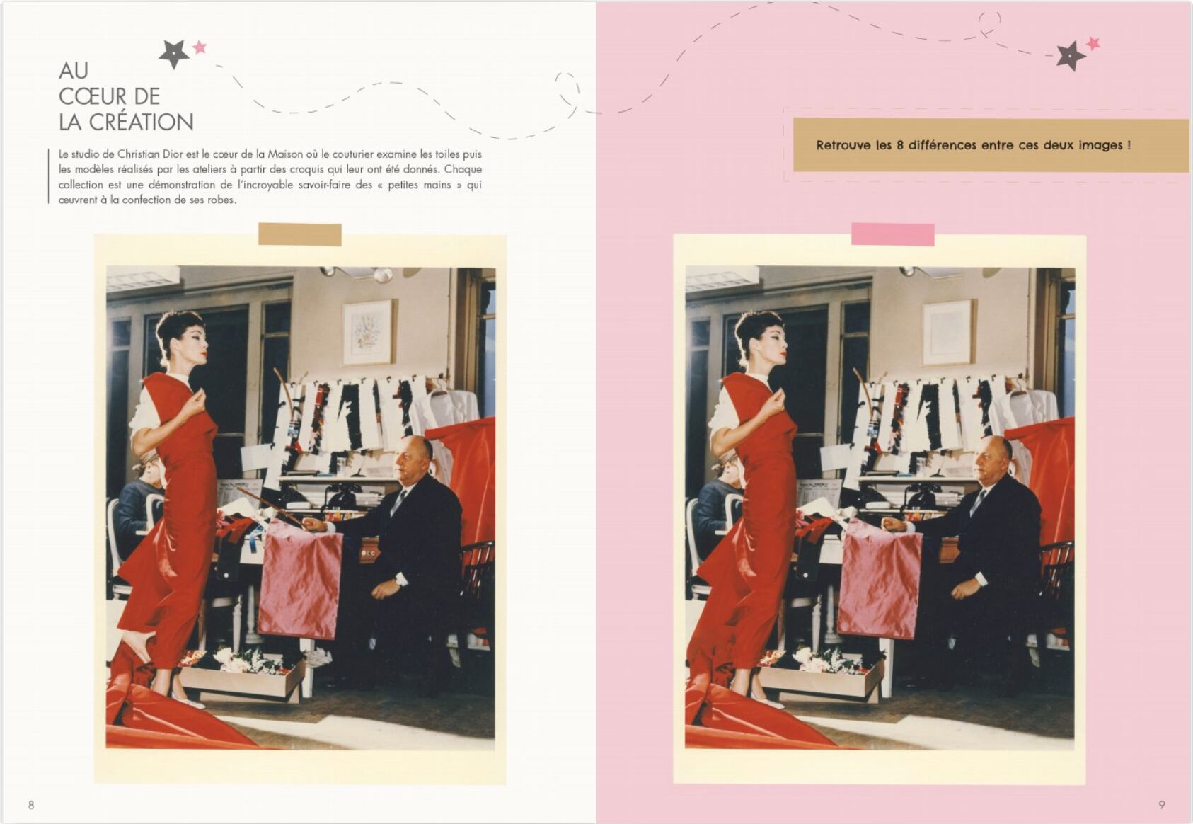 このアクティビティ ブックでは、ディオールのデッサン、ファッション ショーの写真、生地見本までさまざまな素材から、オートクチュールの世界を体験できます。
